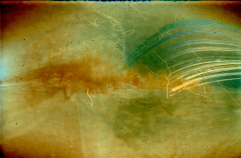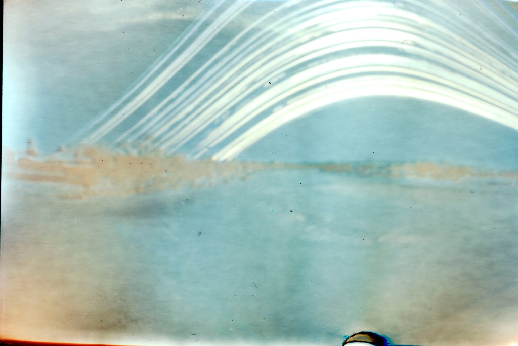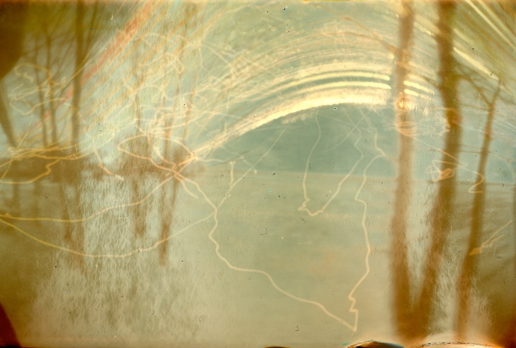 Amniotique est un projet poétique qui lie les lieux qu’on habite et les gens qui y vivent. Je m’intéresse à l’attachement maternelle en lien avec la symbolique de l’eau retrouvée dans le réseau des rivières et du fleuve parcourant notre territoire. Pour documenter l’impossibilité de fixer le mouvement de l’eau et ce processus de filiation, j’ai demandé à ma mère et la mère de partenaire d’installer des caméras sténopés en face de leur maison qui font face à la rivière Chaudière et au fleuve. Ce processus de création est inspirée de l’idée du rapport temporel entre la gestation de ma fille alors dans mon ventre et du processus de longue exposition de cette technique marginale de photographie. Cette oeuvre poétique tente d’imaginer le vécu d’un enfant dans le ventre de sa mère dont le passage de la lumière accompagne la croissance opaque du processus de devenir mère et de la création artistique, mais aussi sa marque dans ces chambres noires.