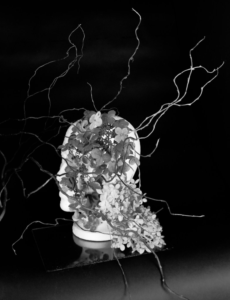 La « boîte noire » est un espace stable à la construction éphémère. Ses parois deviennent un cadre où le regard se dépose, où les objets, au rythme du grand format, oscillent entre mouvement et contemplation. Le temps y déroule sa trame, transformant peu à peu les formes et leur interprétation. Entre nature et simulacre, réel et artificiel, l’organisation des plans fait dialoguer les présences – en échos positifs ou négatifs – jusqu’à composer un ensemble, une série comme un territoire intérieur.